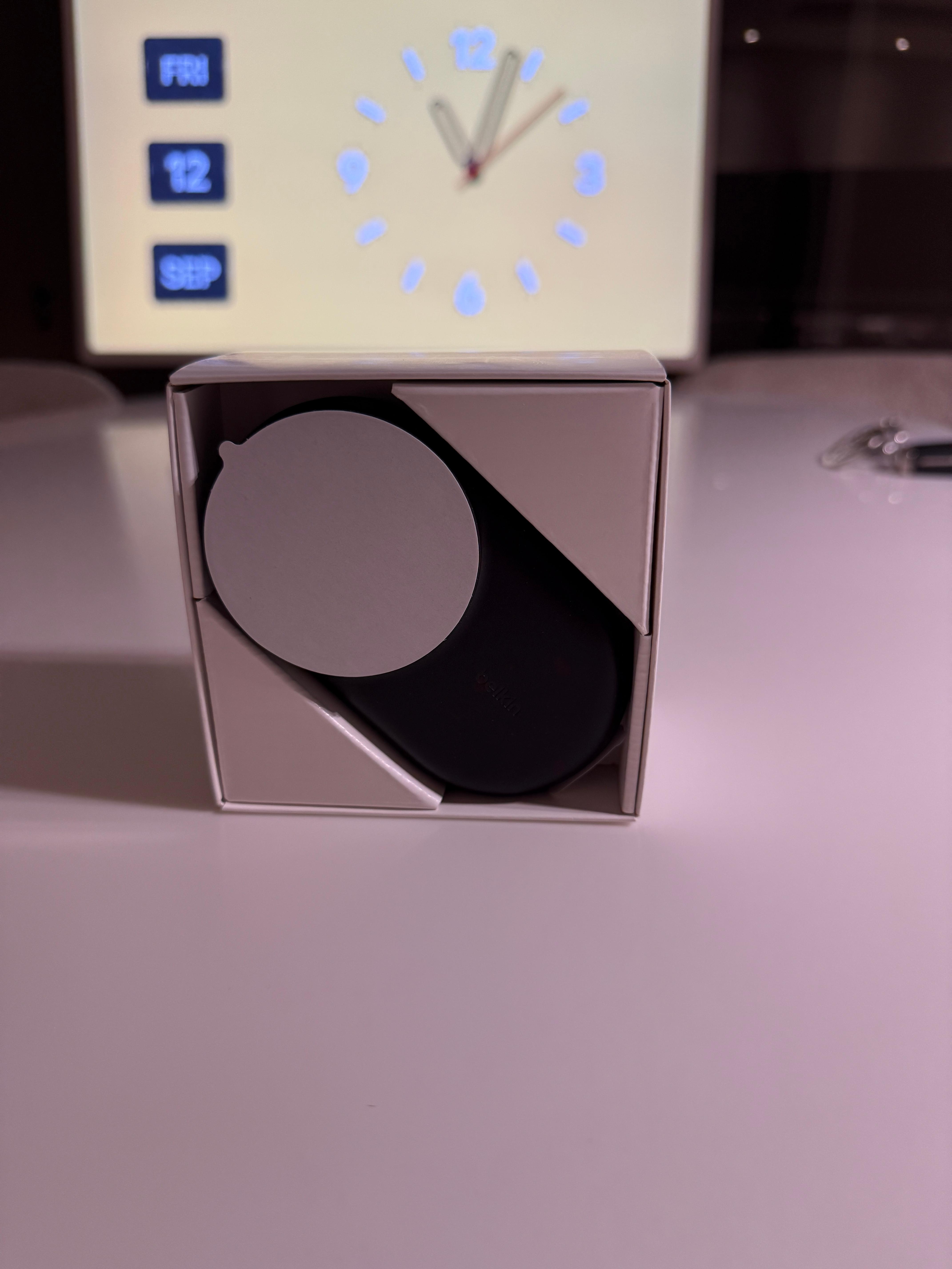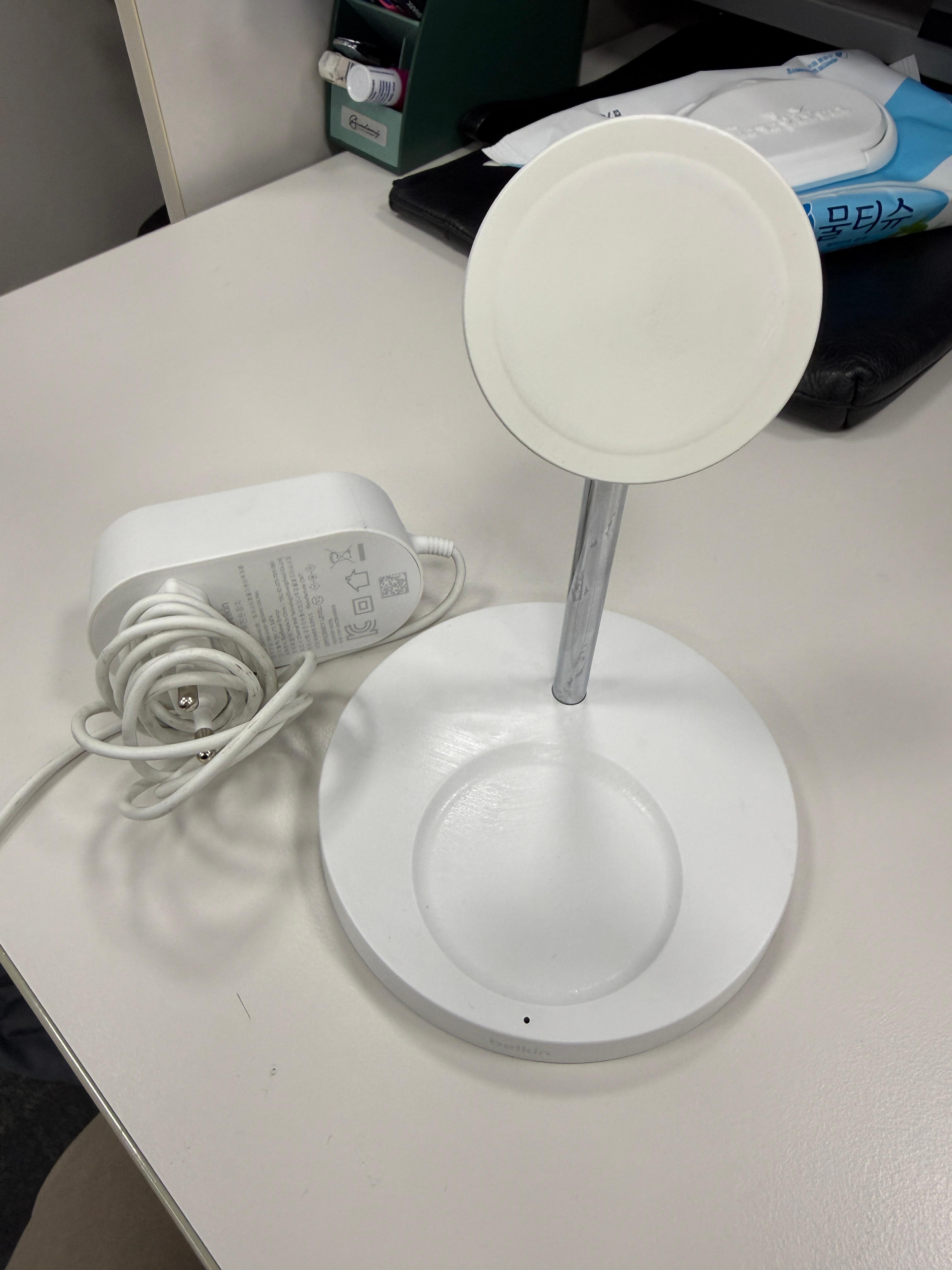 제가 그동안 회사에서 쓰던 충전기는 벨킨 2in1 15W 무선 충전기였는데요, 크기가 크고 거치형이라 집이나 회사 책상에 두고 쓰는 용도에 딱 맞았죠. 하지만 이걸 가방에 넣고 다니며 카페에서 쓰기엔 부담스러웠습니다.